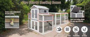 STURDY NESTING BOXES: Equipped with 2 spacious nesting boxes, this hen house provides a cozy environment for egg laying. The spacious nesting boxes provide plenty of room for chickens to nest comfortably, while the open roof design allows for easy egg retrieval