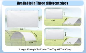 Quality Materials: the chicken coop cover is crafted from PE material, assuring you of its durability; It offers reliable protection against direct sunlight, rain, snow, and other external elements; It is the ideal protection for your hens, chickens, rabbits, ducks, and other small animals, shielding them from dust and weather changes; The quality material also contributes to the longevity of the product, hence you are assured of long term service