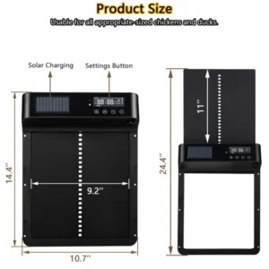 Built-in Safety Sensors:Our automatic chicken door features a safety sensor,can immediately stop closing if it detects any obstructions.The door will then automatically try to close again until there are no obstructions in the way.This will protect your chicks from harm.