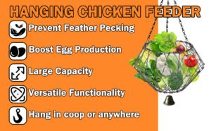 “Elevated hanging design keeps feed clean and accessible, keep coop clean reduce ground combat