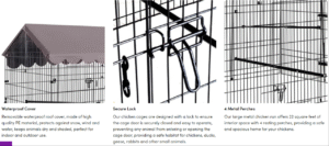 Secure Lock -Our chicken cage design with lock which is make sure the door close secure, Simple operation, prevent any animals from entering or opening the door, provde a safe place for chickens, ducks, geese, rabbits and other small animals