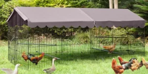 Spacious Activity Area– 22 ft² Metal chicken run great for 6-8 various small animals like chickens, ducks, geese, rabbits, cats, and more, providing a secure exercise pen.Pls note that the package do not include the wooden chicken coop.